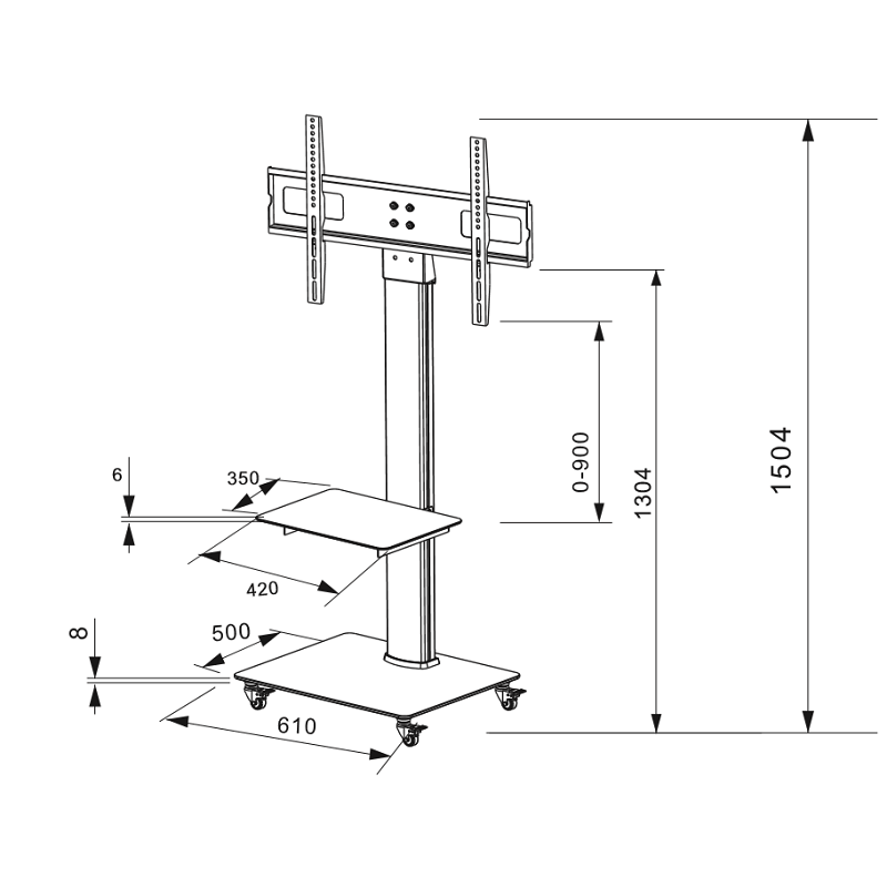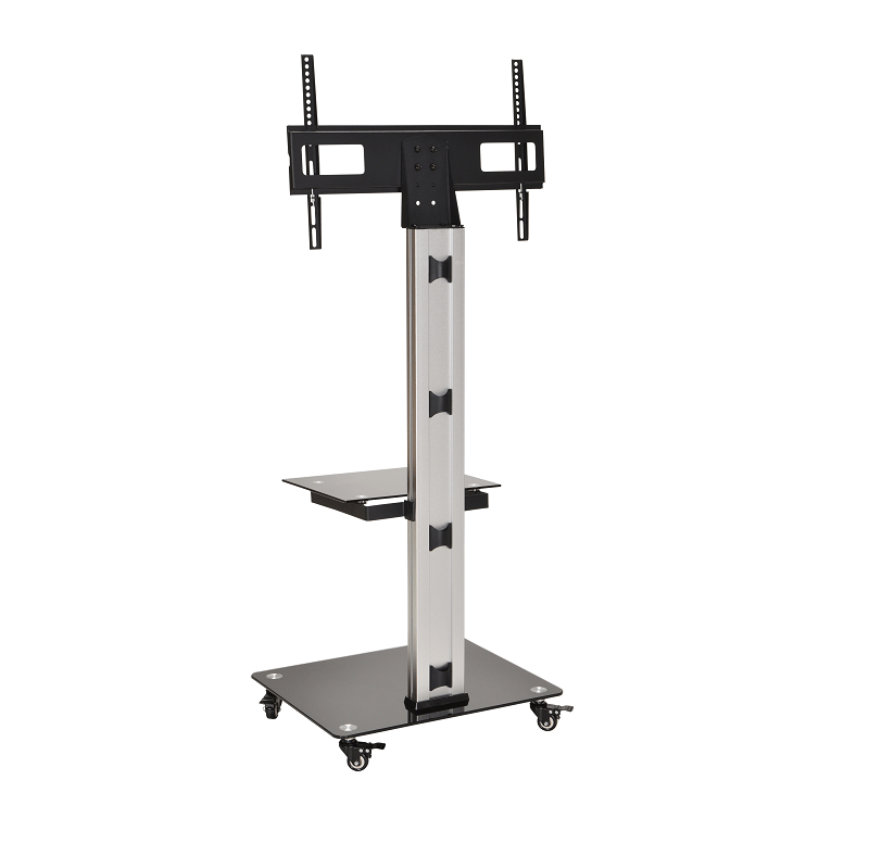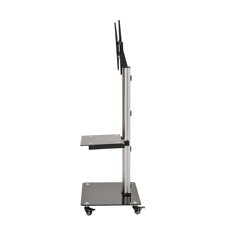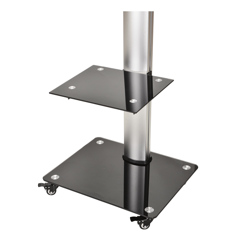 Le DQ Adrian est un élégant support pied TV de la marque DQ Wall-Support qui convient parfaitement aussi bien à un usage professionnel que domestique. Ce support est mobile grâce à ses roulettes mais très stable grâce à leurs freins. Il est conçu pour des écrans de 32 à 70 pouces et de mesure VESA maximale 600 x 400 mm. Sa tablette en verre est réglable en hauteur et mesure 350 x 420 mm. L'autre tablette au pied du support mesure 610 x 500 mm. Il supporte une charge maximale de 40 kg et sa hauteur est de 156 cm.